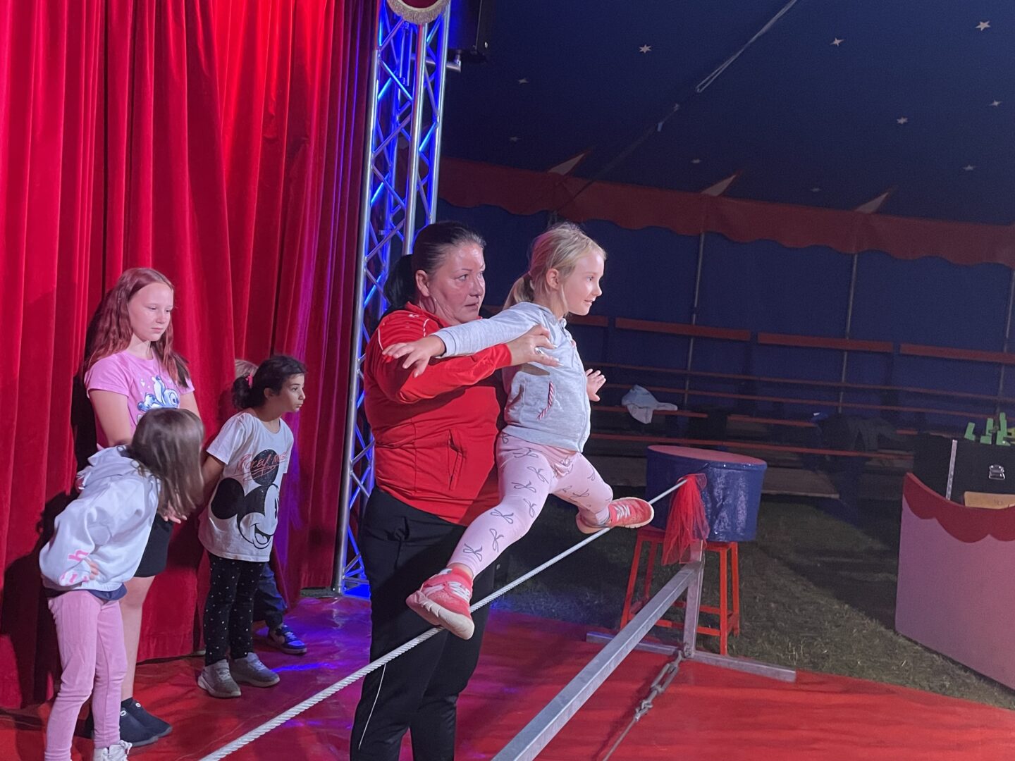 Ein erstes Training offenbarte einige Zirkus-Talente… Familie Casselly half überall beherzt und lernte den Kindern innerhalb kürzester Zeit jede Menge verschiedenster Kunststücke.